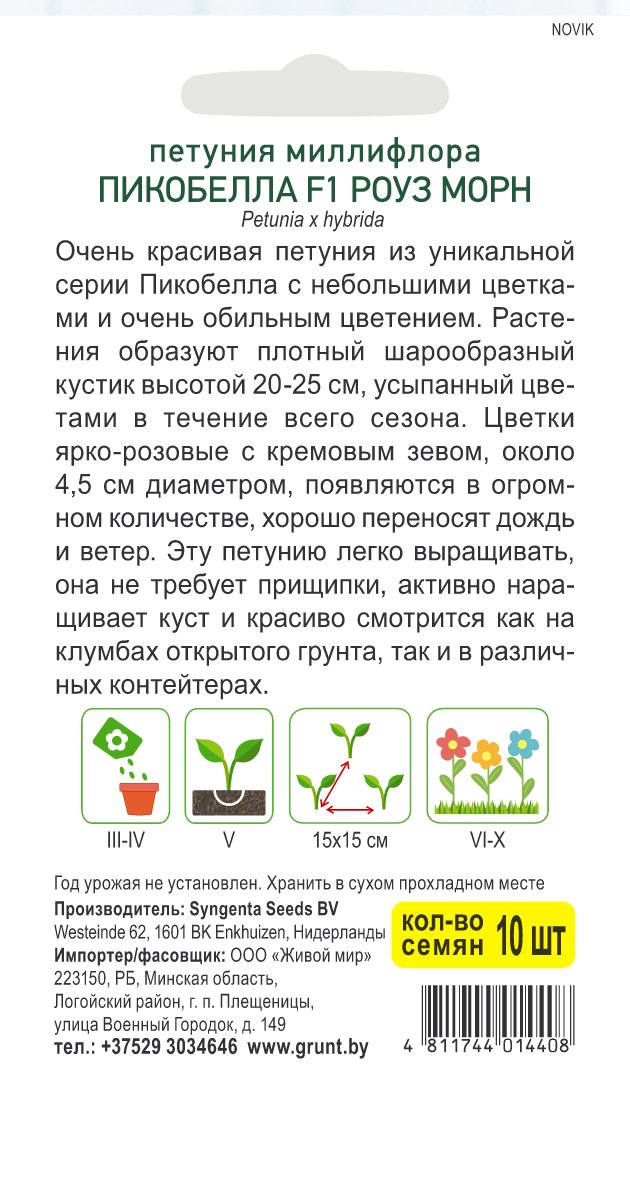 Петуния миллифлора Пикобелла F1 Роуз Морн (Syngenta) 10 шт, РБ