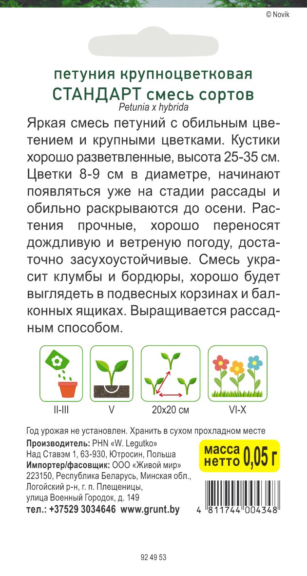 Петуния крупноцветковая Стандарт смесь сортов (W. Legutko) 0,05 г, РБ
