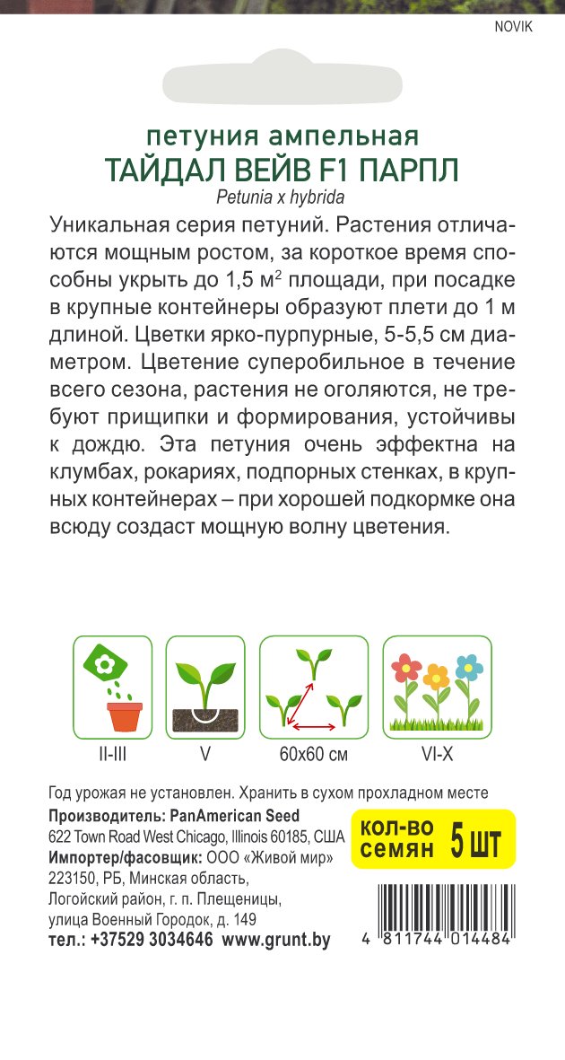 Петуния Тайдал Вейв F1 Парпл ампельная (PanAmerican Seed) 5 шт, РБ