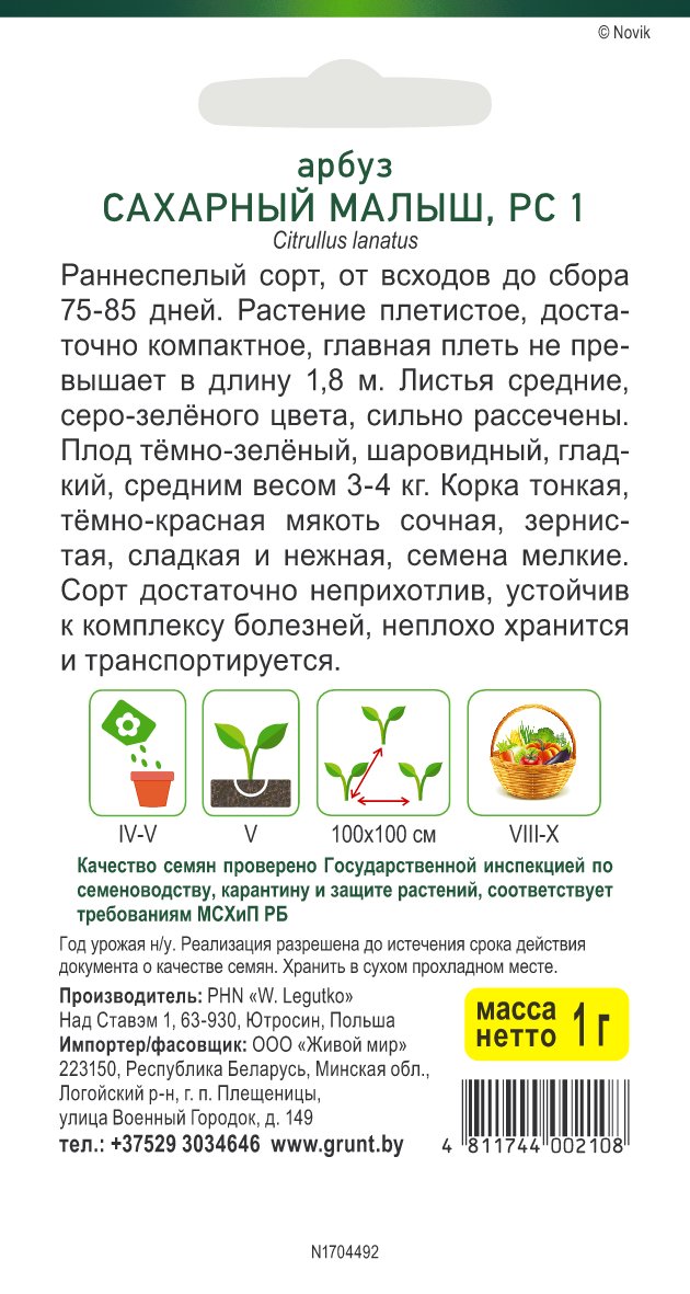 Арбуз Сахарный малыш (W. Legutko) 1 г, РБ