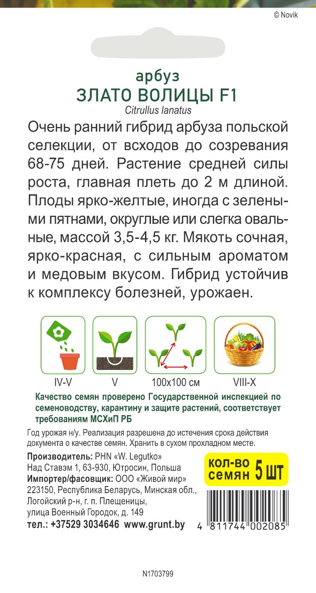 Арбуз Злато Волицы F1 (W. Legutko) 5 шт, РБ