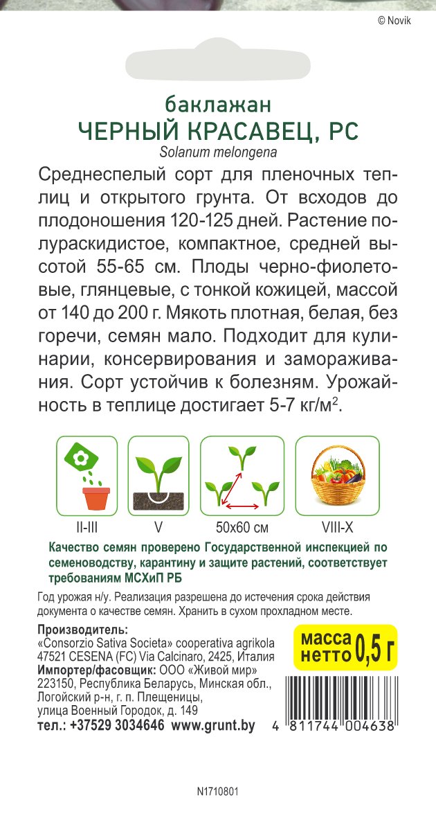 Баклажан Черный красавец (Sativa) 0,5 г, РБ