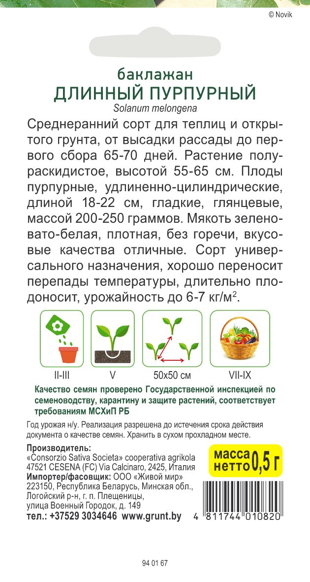 Баклажан Длинный пурпурный (Sativa) 0,5 г, РБ