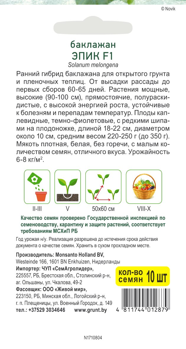 Баклажан Эпик F1 (Seminis) 10 шт, РБ