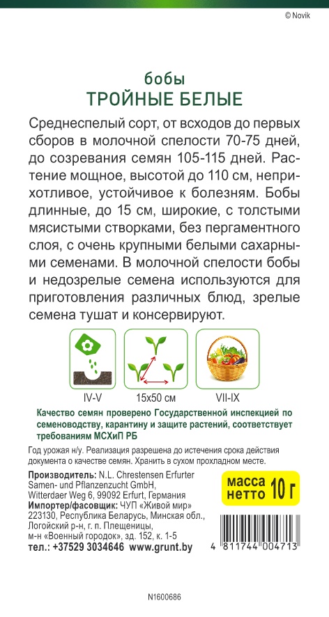 Бобы Тройные Белые (N.L.Chrestensen) 10 г, РБ