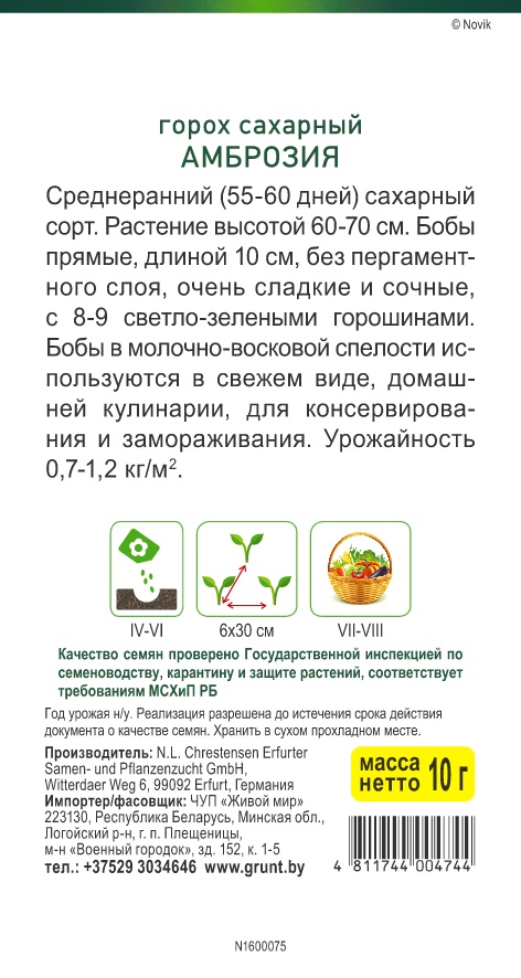 Горох Амброзия сахарный (N.L.Chrestensen) 10 г, РБ