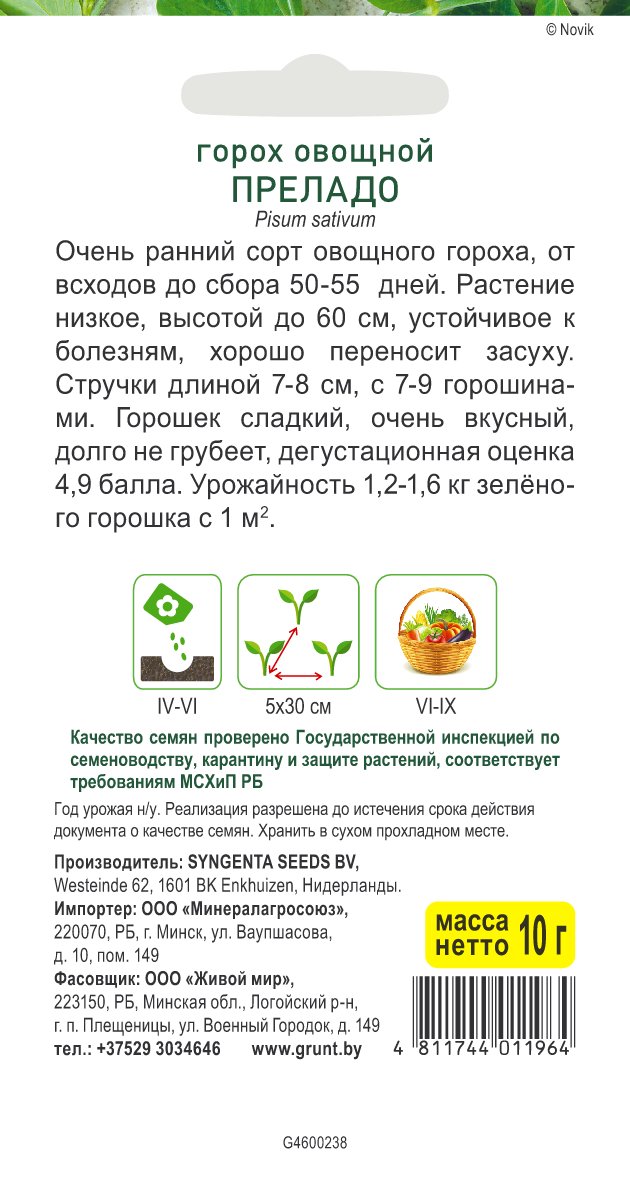 Горох овощной Преладо (Syngenta) 10 г, РБ
