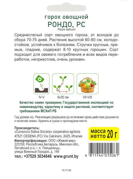 Горох овощной Рондо (Sativa) 20 г, РБ