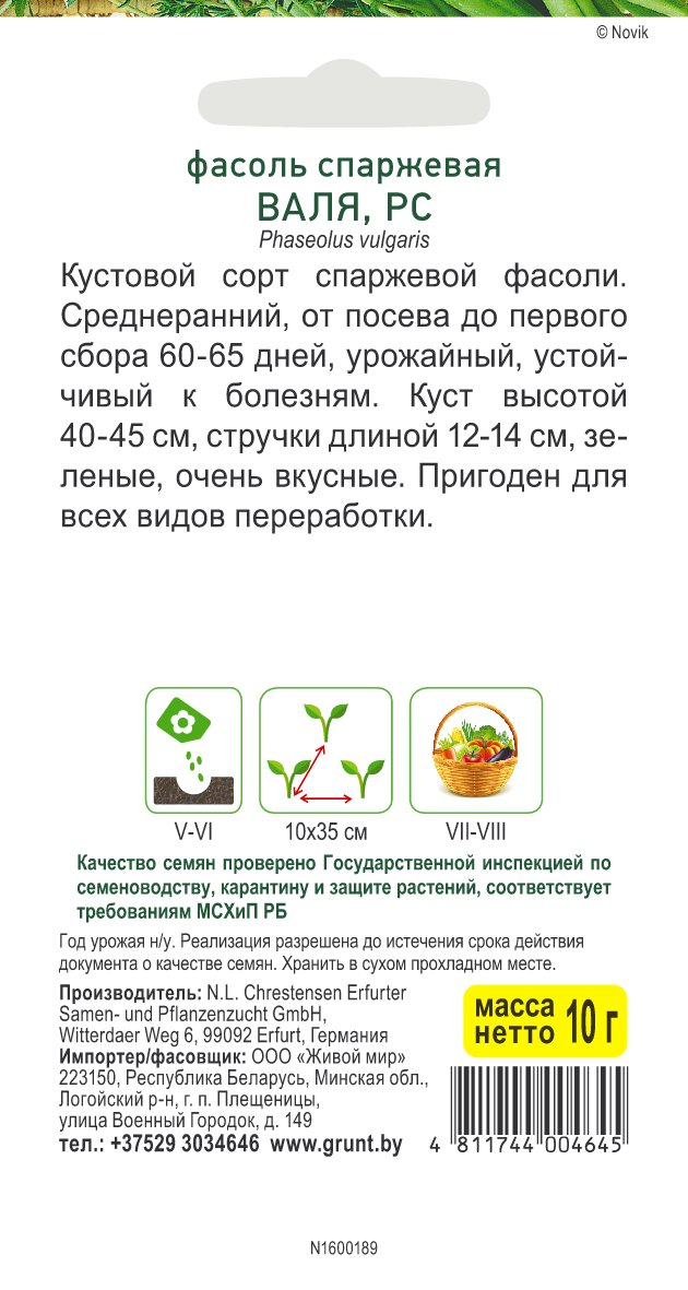Фасоль Валя спаржевая (N.L.Chrestensen) 10 г, РБ