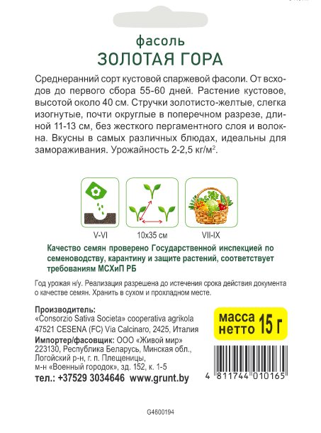 Фасоль Золотая гора спаржевая (Sativa) 15 г, РБ
