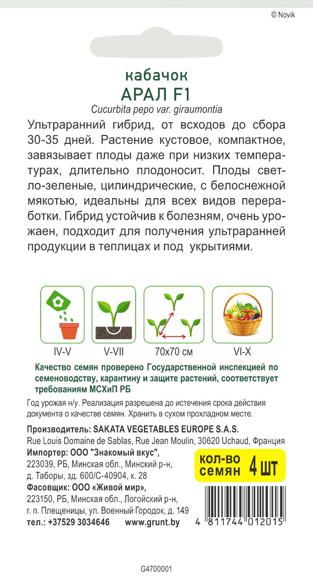 Кабачок Арал F1 (Sakata) 4 шт, РБ