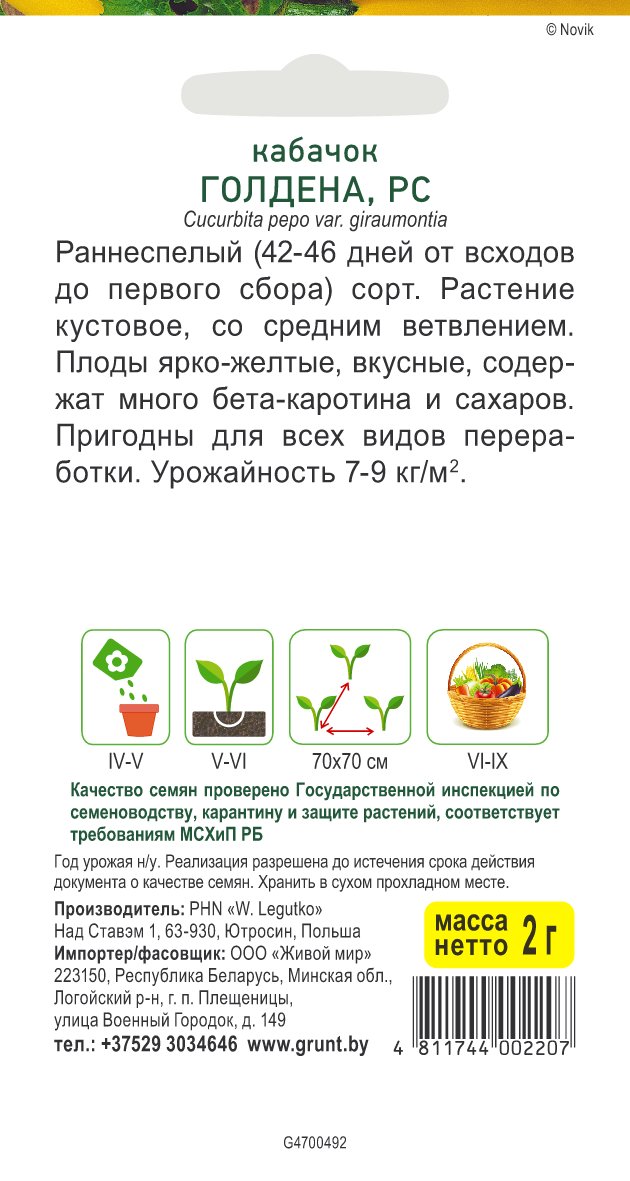 Кабачок Голдена (W. Legutko) 2 г, РБ