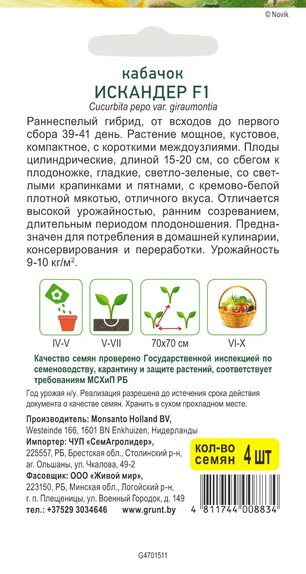 Кабачок Искандер F1 (Seminis) 4 шт, РБ