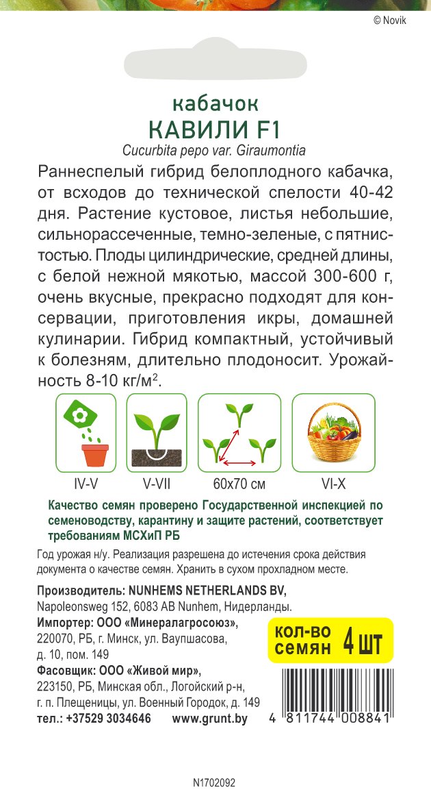 Кабачок Кавили F1 (Nunhems) 4 шт, РБ