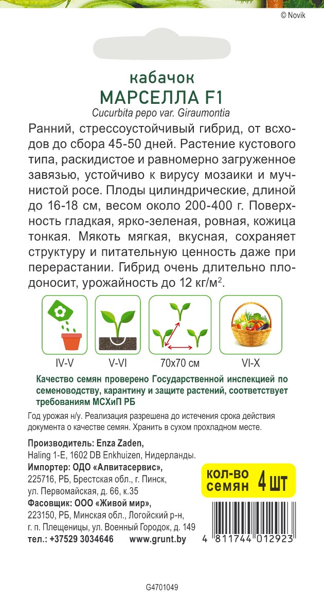 Кабачок Марселла F1 (Enza Zaden) 4 шт, РБ