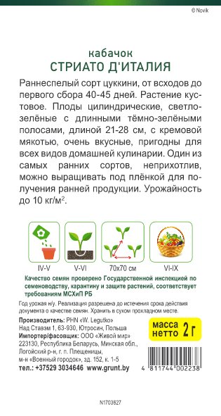 Кабачок Стриато д'Италия (W. Legutko) 2 г, РБ