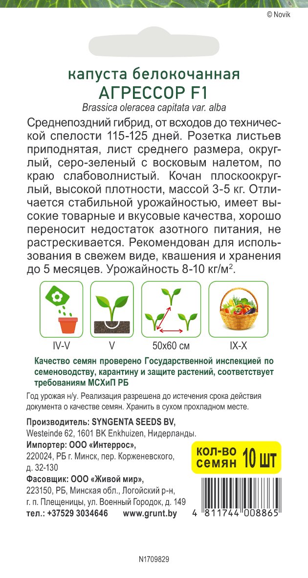 Капуста белокоч. Агрессор F1 (Syngenta) 10 шт, РБ