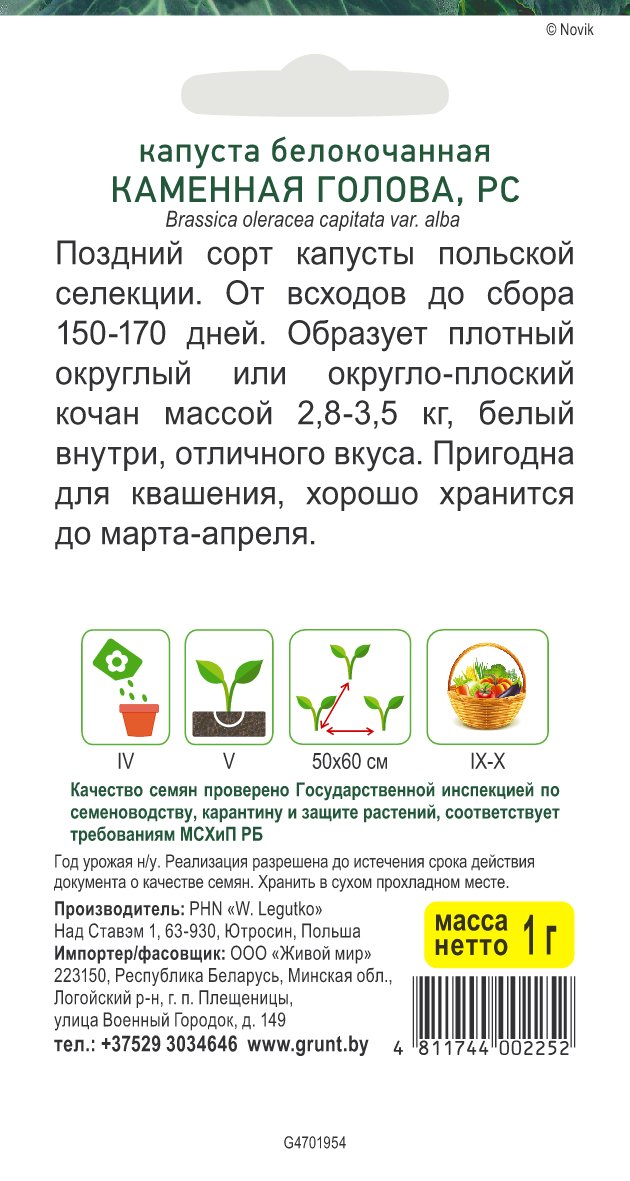 Поздний сорт капусты польской селекции. От всходов до сбора 150-170 дней.