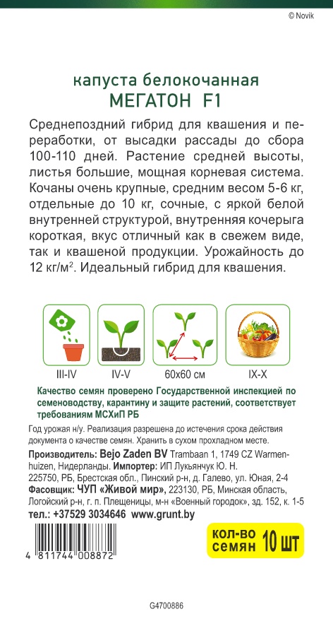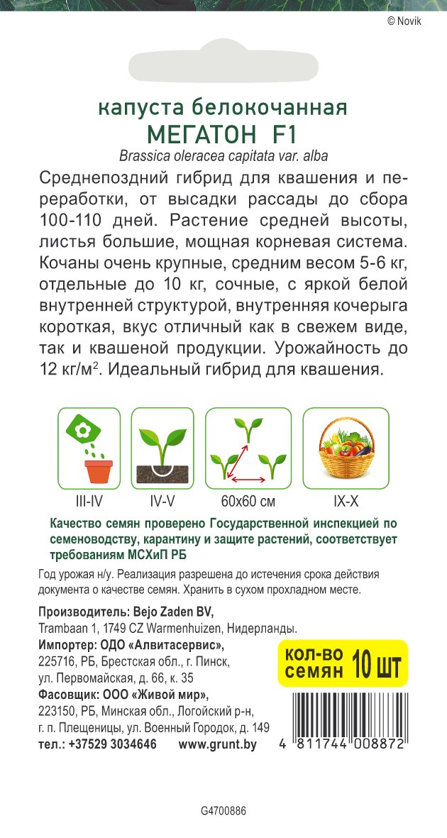 Капуста белокоч. Мегатон F1 (Bejo Zaden) 10 шт, РБ