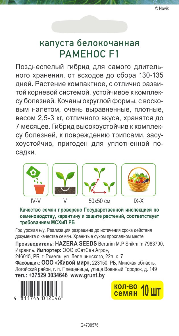 Капуста белокоч. Раменос F1 (Hazera) 10 шт, РБ