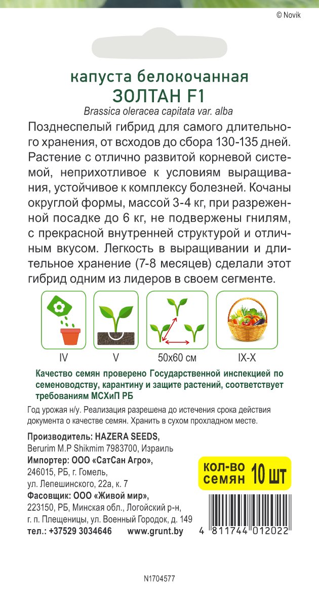Капуста белокоч. Золтан F1 (Hazera) 10 шт, РБ