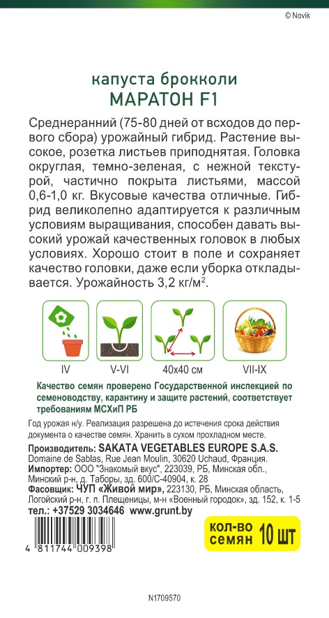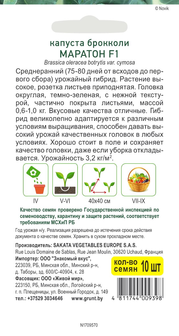 Капуста брокколи Маратон F1 (Sakata) 10 шт, РБ