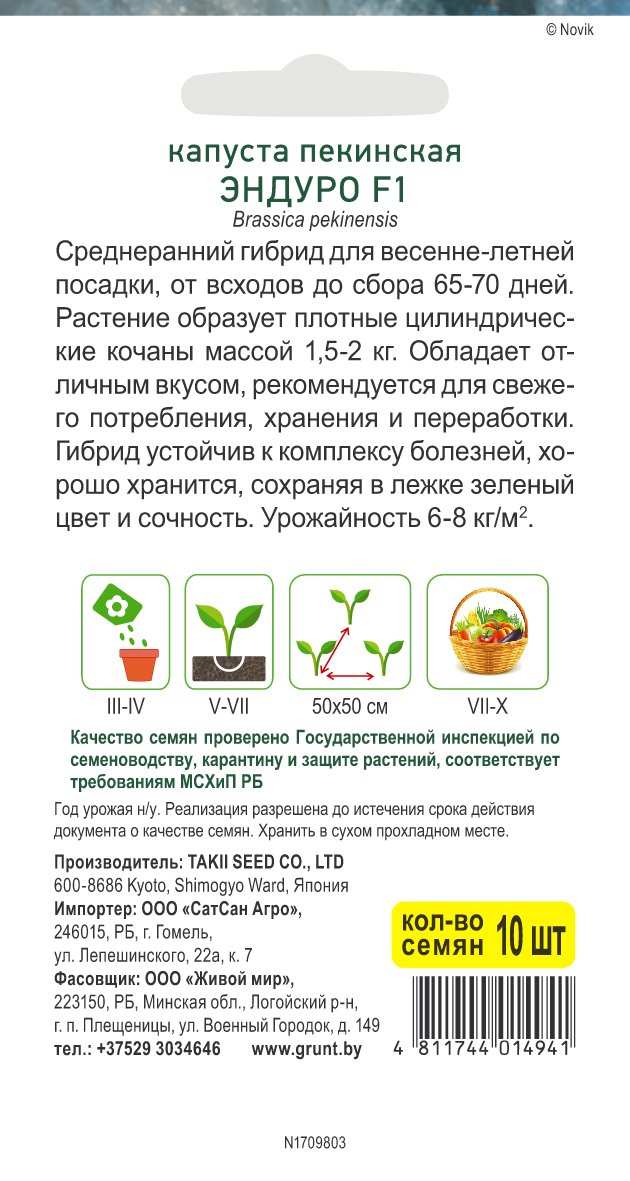 Капуста пекинская Эндуро F1 (Takii seed) 10 шт, РБ