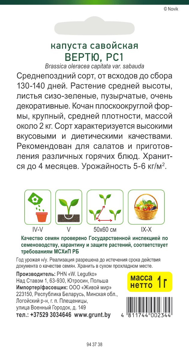 Капуста савойская Вертю (W. Legutko) 1 г, РБ