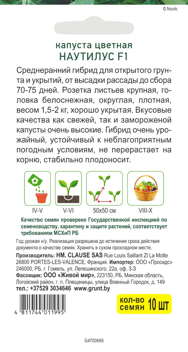 Капуста цветная Наутилус F1 (Clause) 10 шт, РБ
