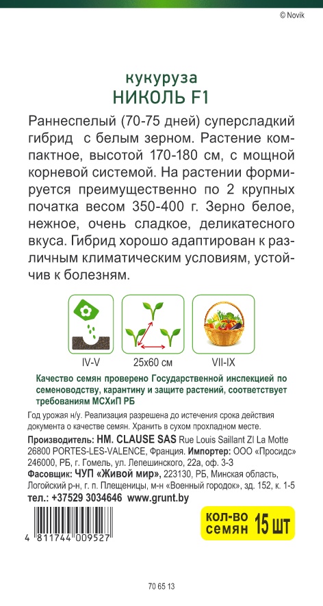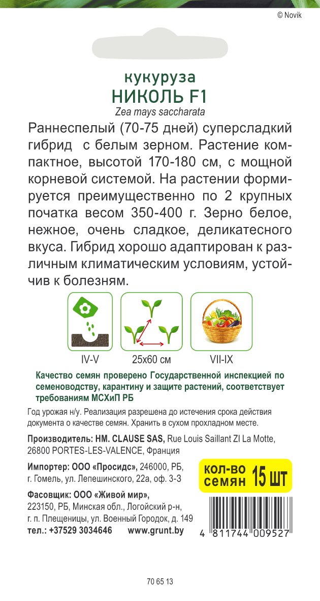Кукуруза Николь F1 (Clause) сахарная 15 шт, РБ