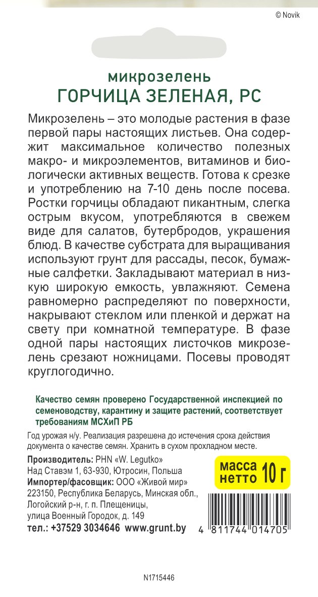 Микрозелень Горчица зеленая (W. Legutko) 10 г, РБ