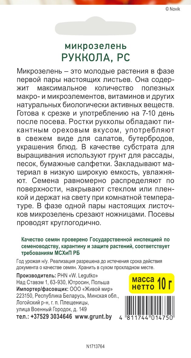 Микрозелень Руккола (W. Legutko) 10 г, РБ