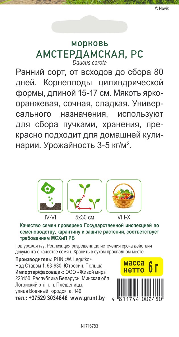 Морковь Амстердамская (W. Legutko) 6 г, РБ