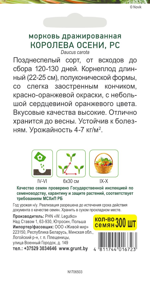 Морковь драж. Королева осени 300 шт, РБ