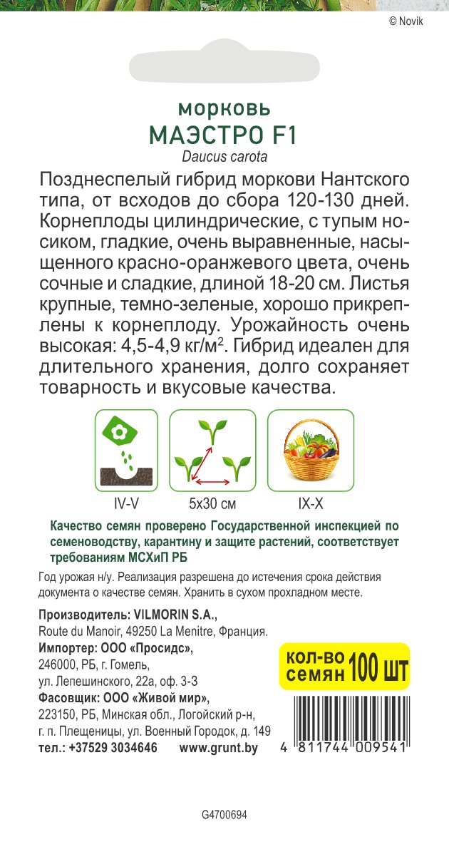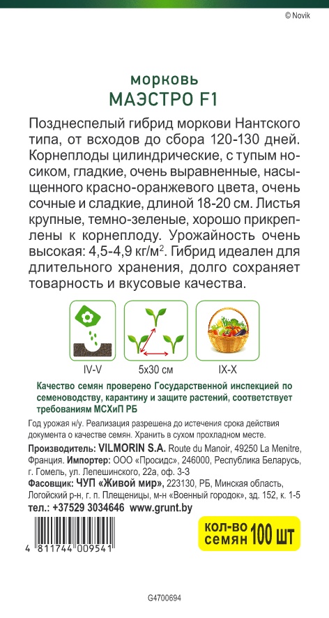 Морковь Маэстро F1 (Vilmorin) 100 шт, РБ
