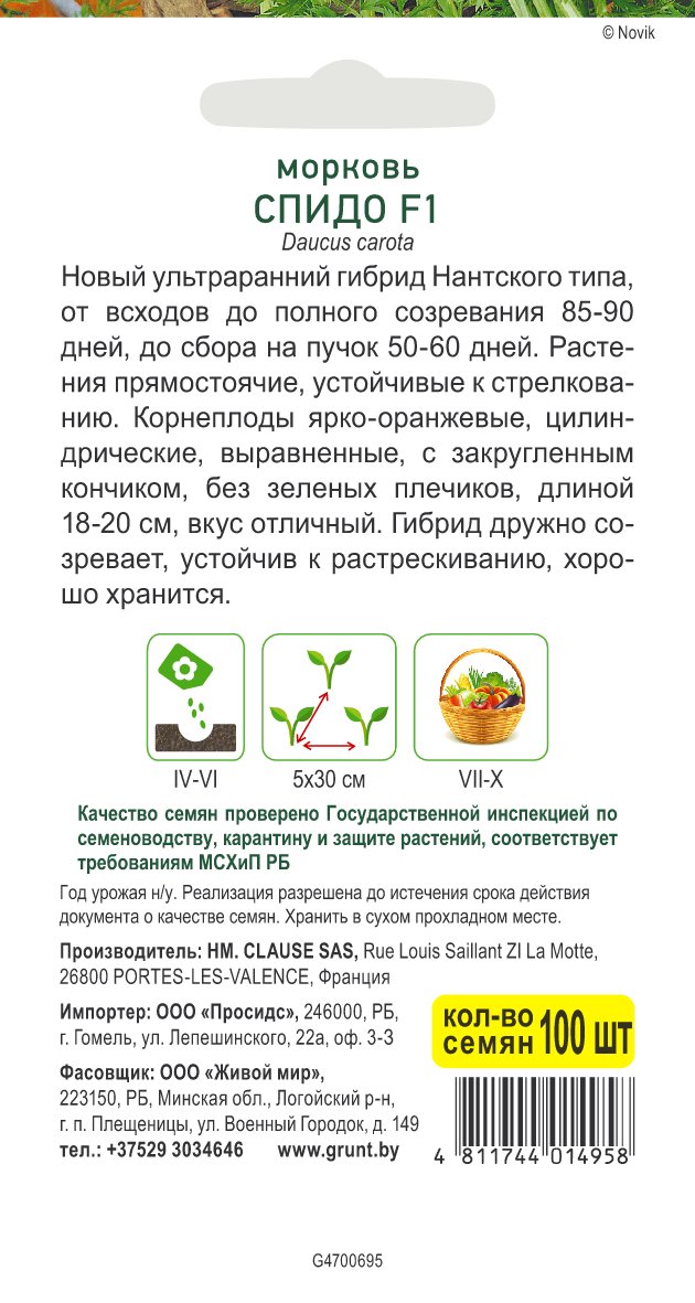 Морковь Спидо F1 (Clause) 100 шт, РБ