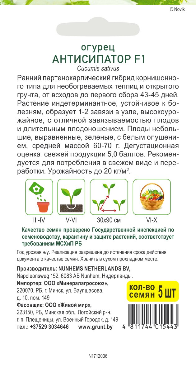 Огурец Антисипатор F1 (Nunhems) 5 шт, РБ