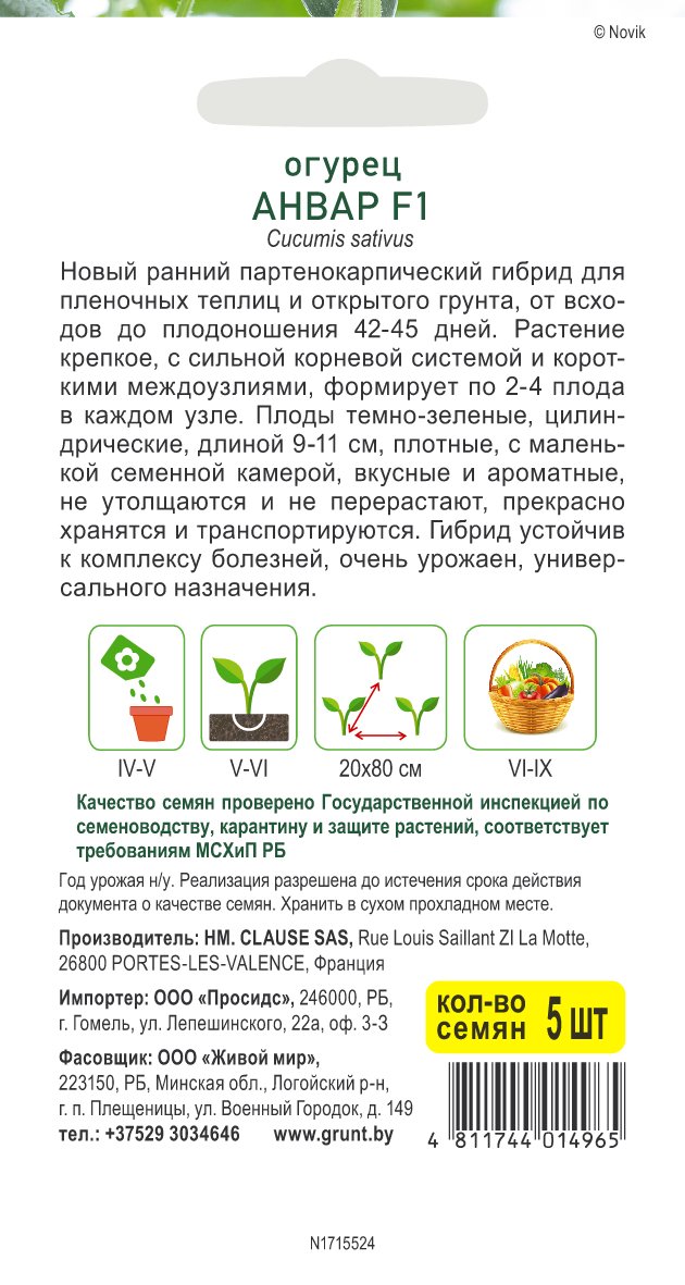 Огурец Анвар F1 (Clause) 5 шт, РБ
