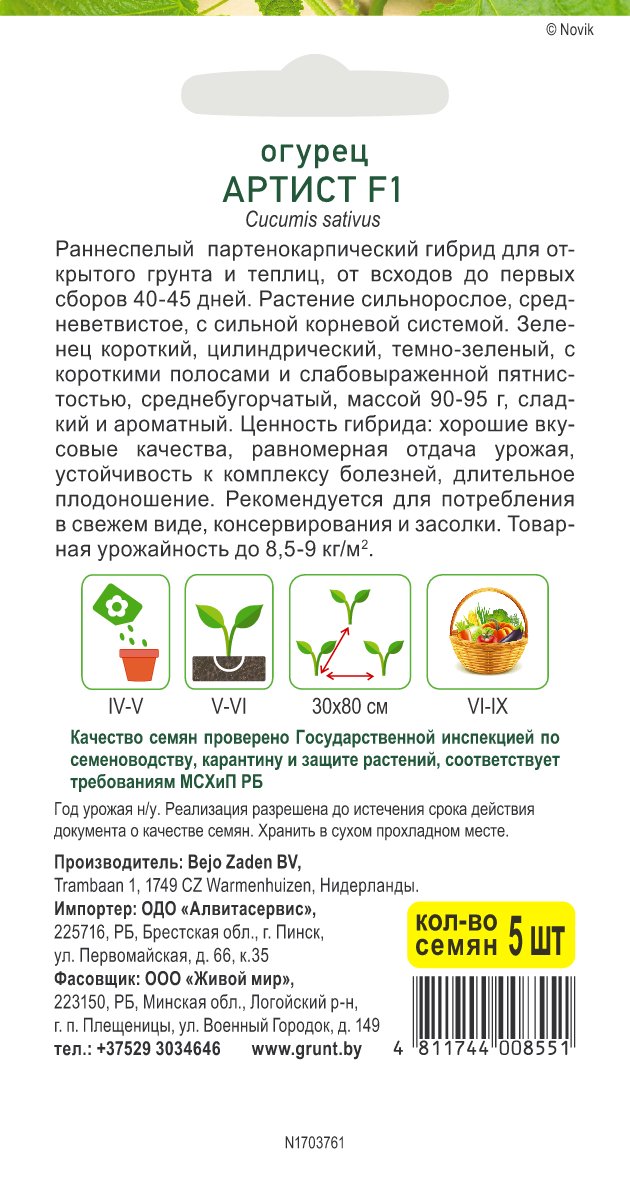 Огурец Артист F1 (Bejo Zaden) 5 шт, РБ