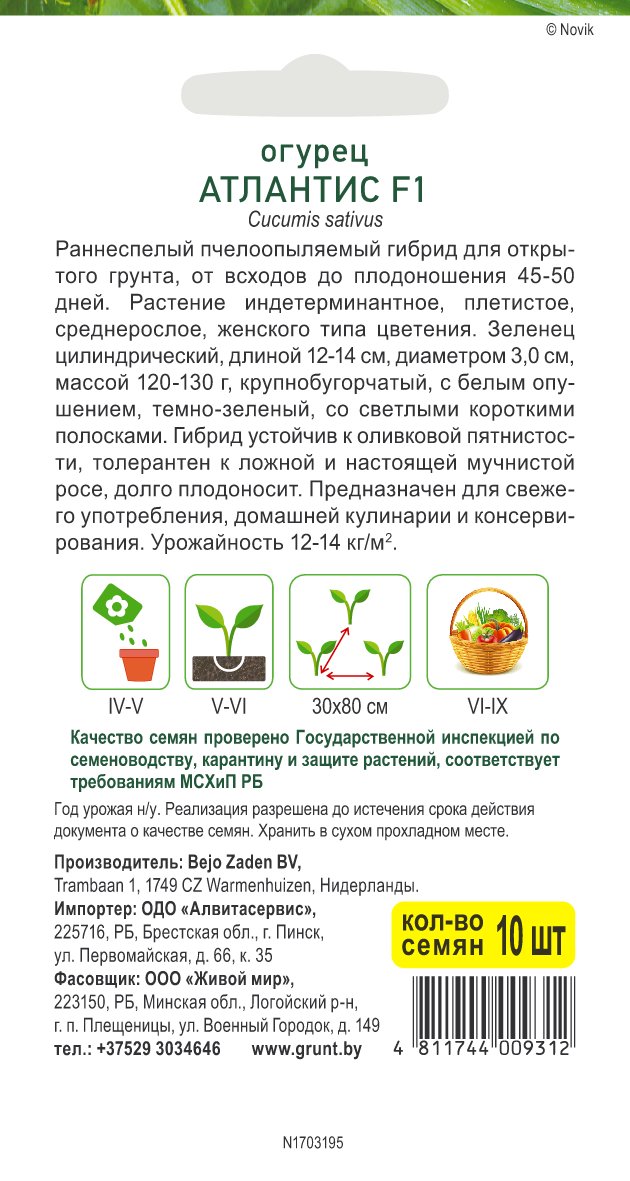Огурец Атлантис F1 (Bejo Zaden) 10 шт, РБ