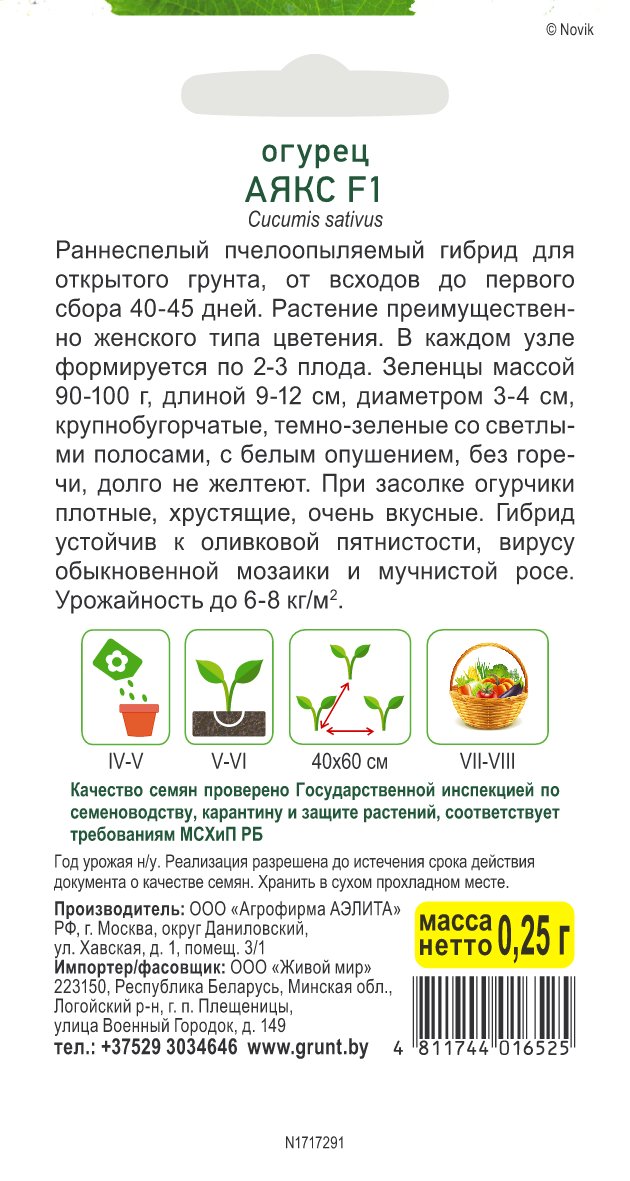 Огурец Аякс F1 (Аэлита) 0,25 г, РБ