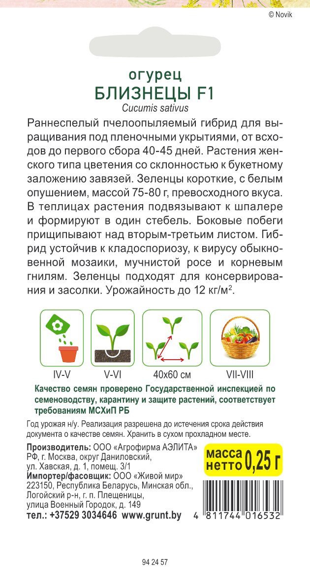 Огурец Близнецы F1 (Аэлита) 0,25 г, РБ
