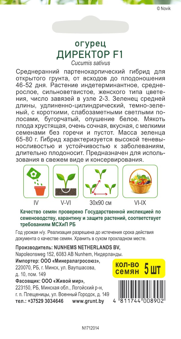 Огурец Директор F1 (Nunhems) 5 шт, РБ