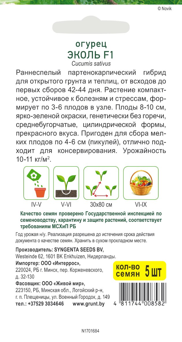 Огурец Эколь F1 (Syngenta) 5 шт, РБ
