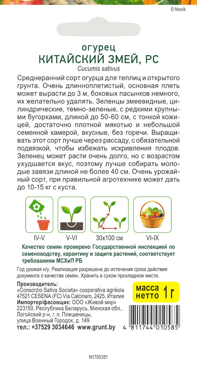 Огурец Китайский змей (Sativa) 1 г, РБ