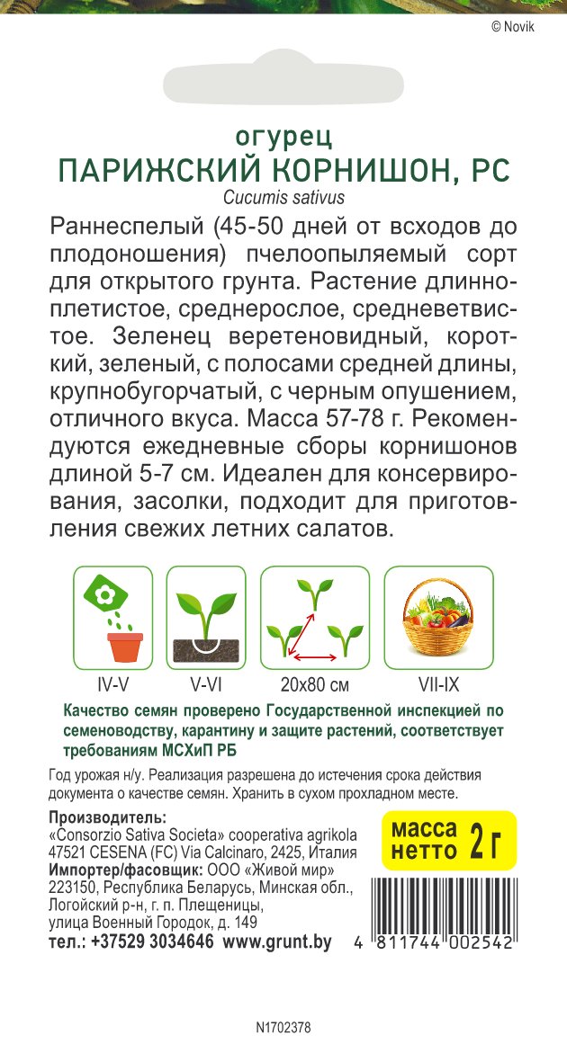 Огурец Парижский корнишон (Sativa) 2 г, РБ