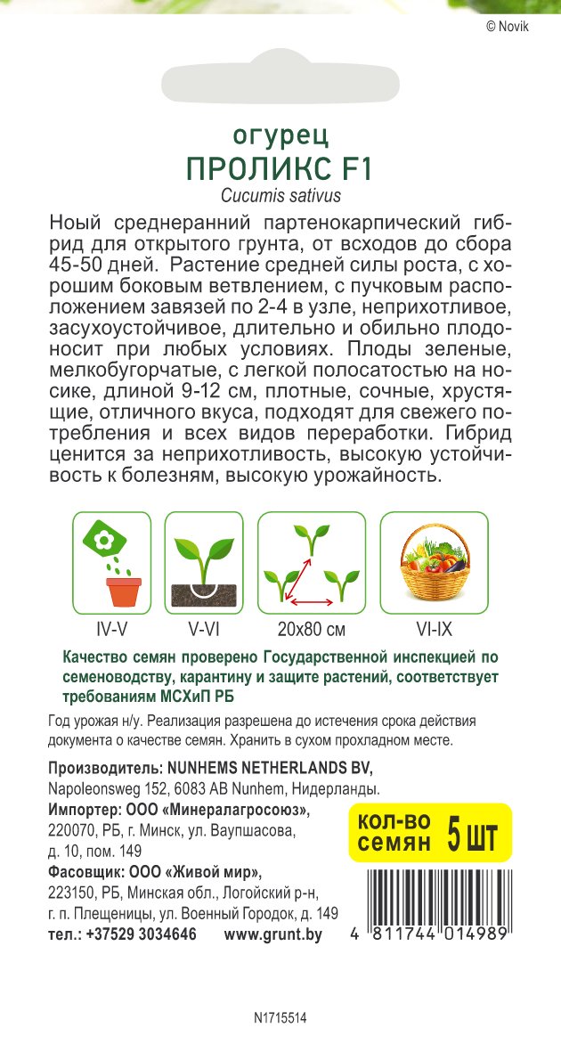 Огурец Проликс F1 (Nunhems) 5 шт, РБ