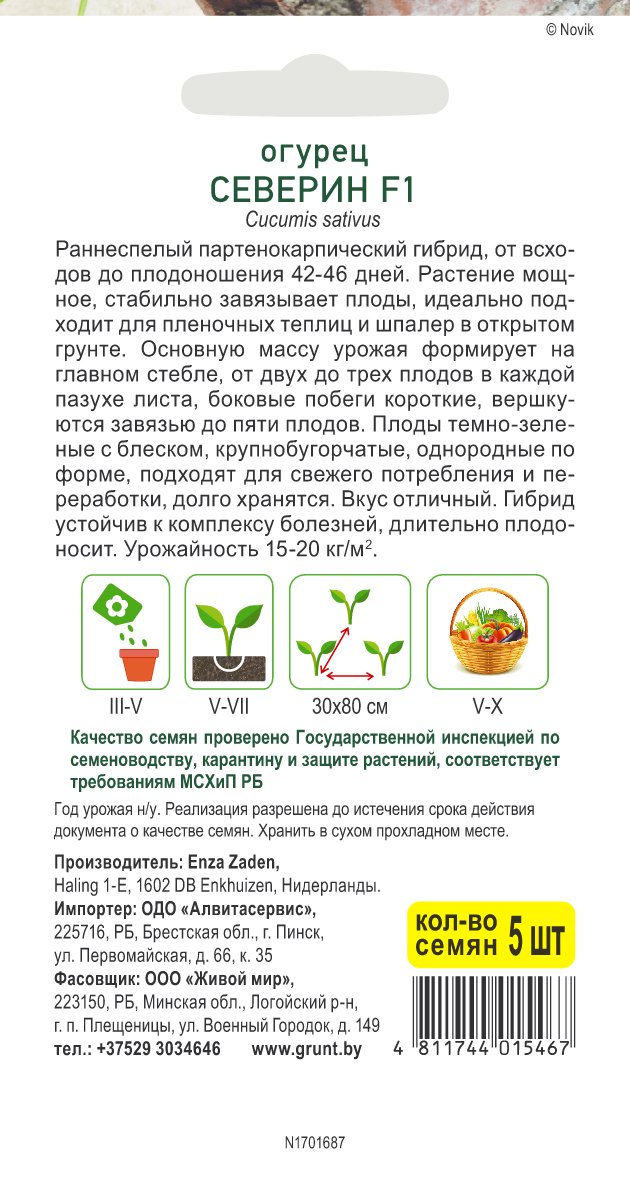 Огурец Северин F1 (Enza Zaden) 5 шт, РБ