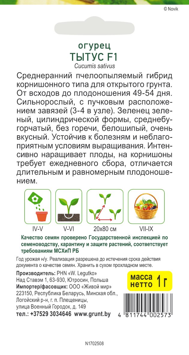 Огурец Тытус F1 (W. Legutko) 1 г, РБ