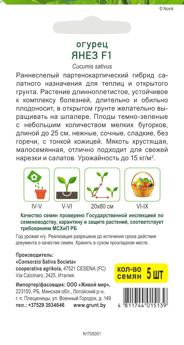 Огурец Янез F (Sativa) 5 шт, РБ